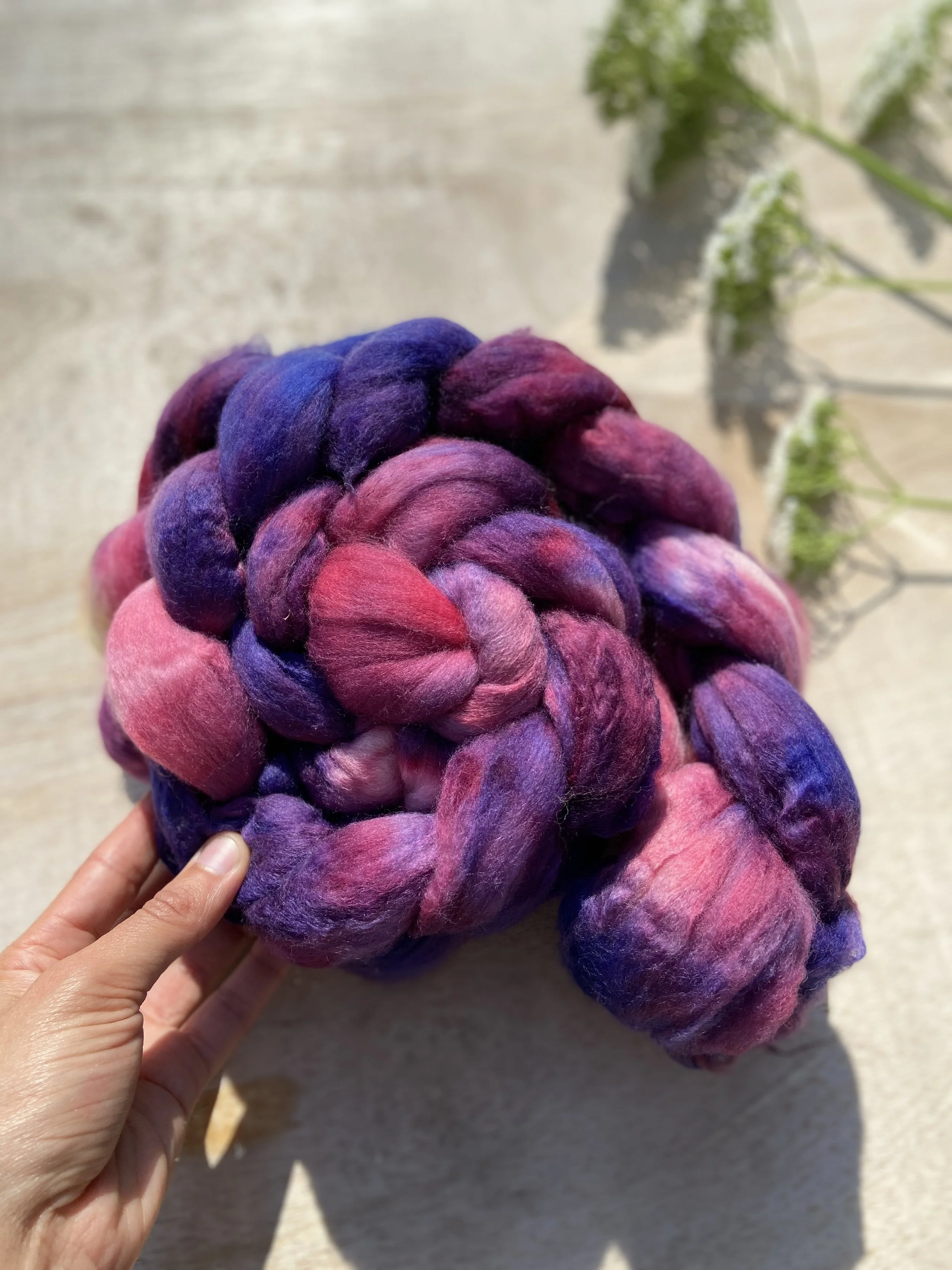 I hand dye all my colors, sometimes leaving them in a braid of fiber that was a planned colorway. What I really love is to blend them on the drum carder! It feels like coaxing the color out of the fiber and letting it really shine in community with its peers.